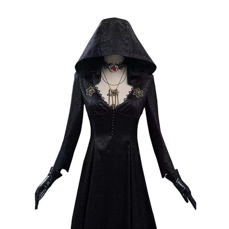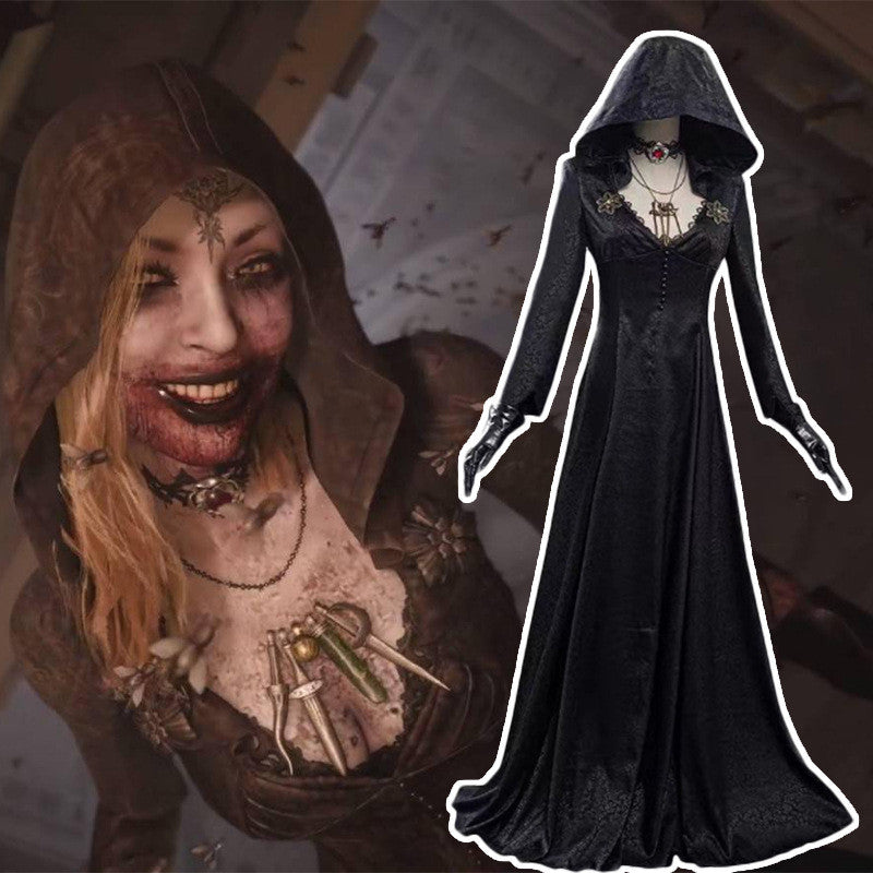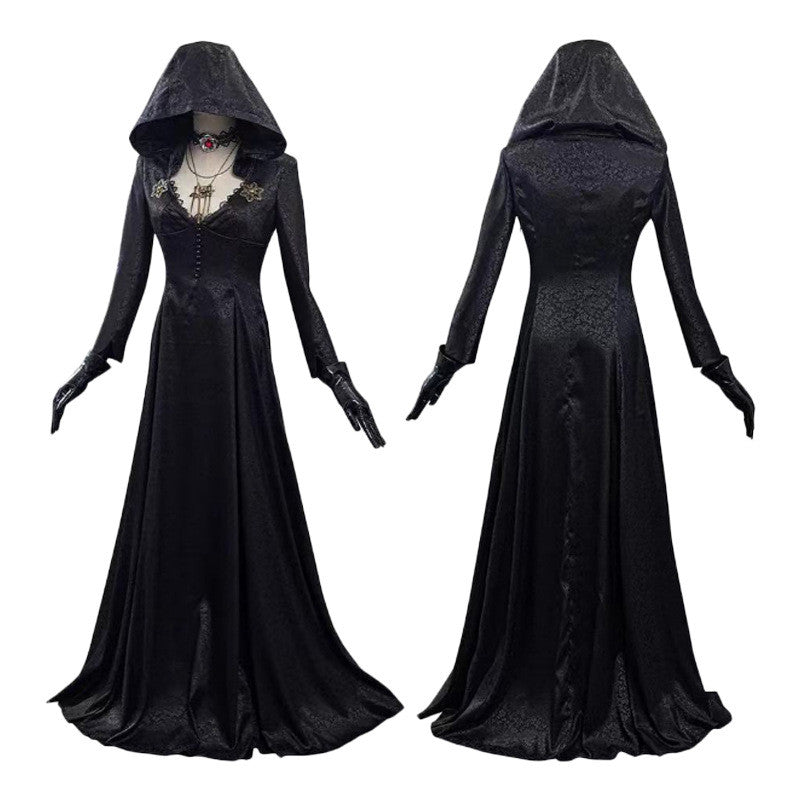 Disfraz de Halloween de vestido largo de vampiro negro hombre y mujer, maravilloso vestido de Vampiro y Vampiresa