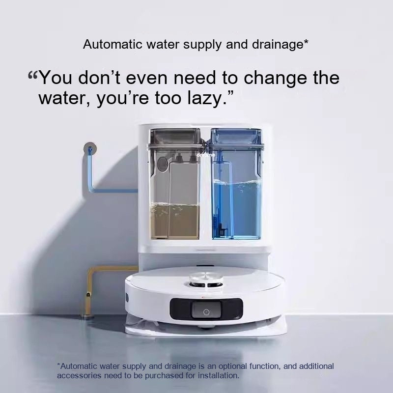 La base inteligente de autolimpieza realiza el ciclo completo: lavado, enjuague, secado con aire caliente y vaciado automático del agua, manteniendo los paños higiénicos y listos para el siguiente uso. Los depósitos duales de 2,5 L separan el agua limpia de la residual, garantizando resultados sanitarios y cero contaminación cruzada.
