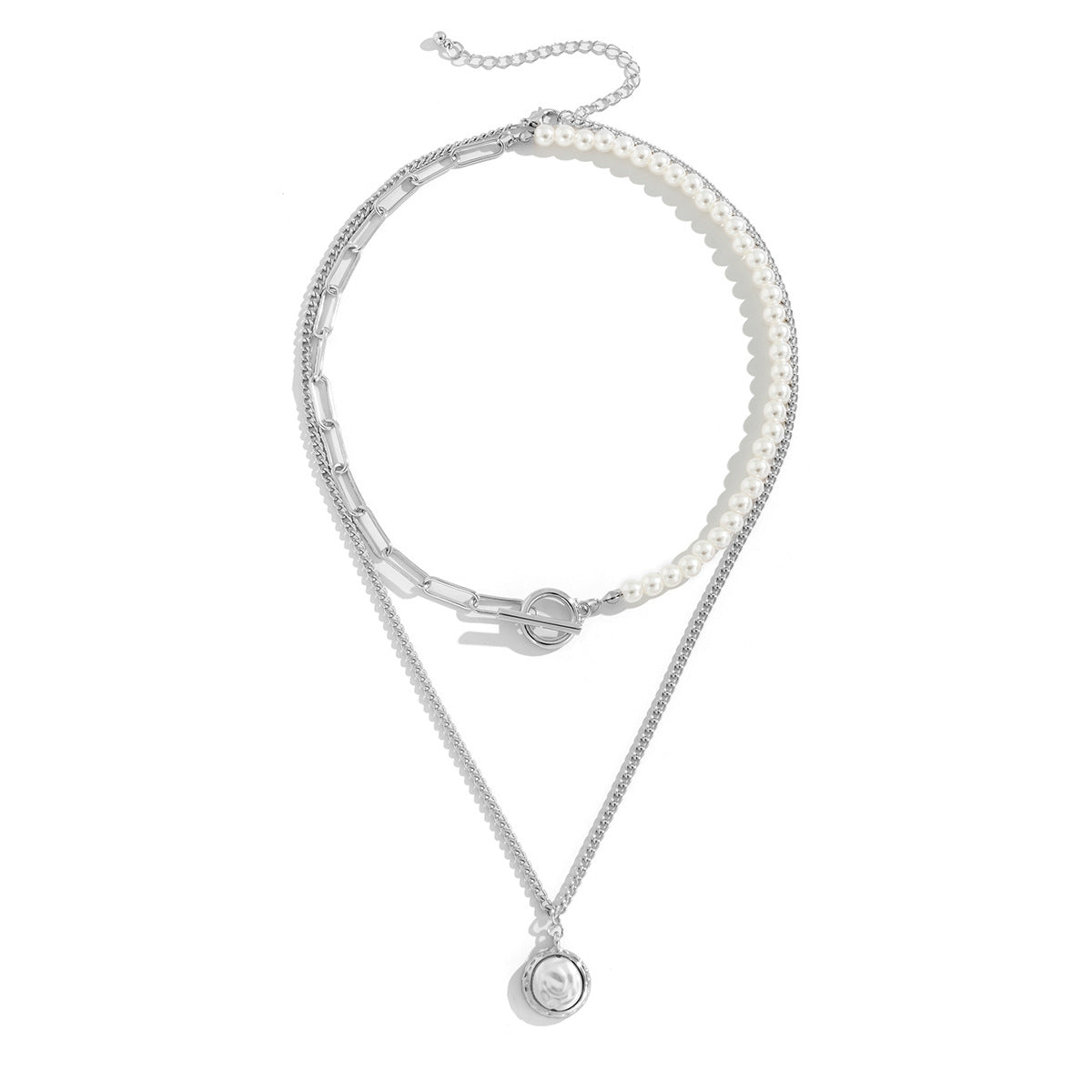 Cadena de metal versátil vintage con doble vuelta en perlas y piedras