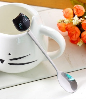 Cuchara de Acero Inoxidable con Mango de Cerámica Gato Blanco y Negro