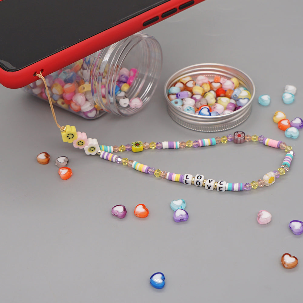 Dale personalidad a tu teléfono con este lanyard hecho a mano que combina cuentas coloridas, detalles smiley y letras para un look único.