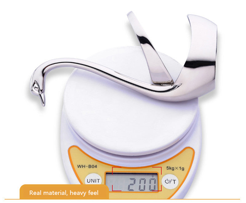 Este hermoso utensilio de postre con diseño de cisne está fabricado en aleación de zinc resistente, con un acabado de pulido espejo mediante rueda de tela, que aporta un brillo sofisticado y refinado.